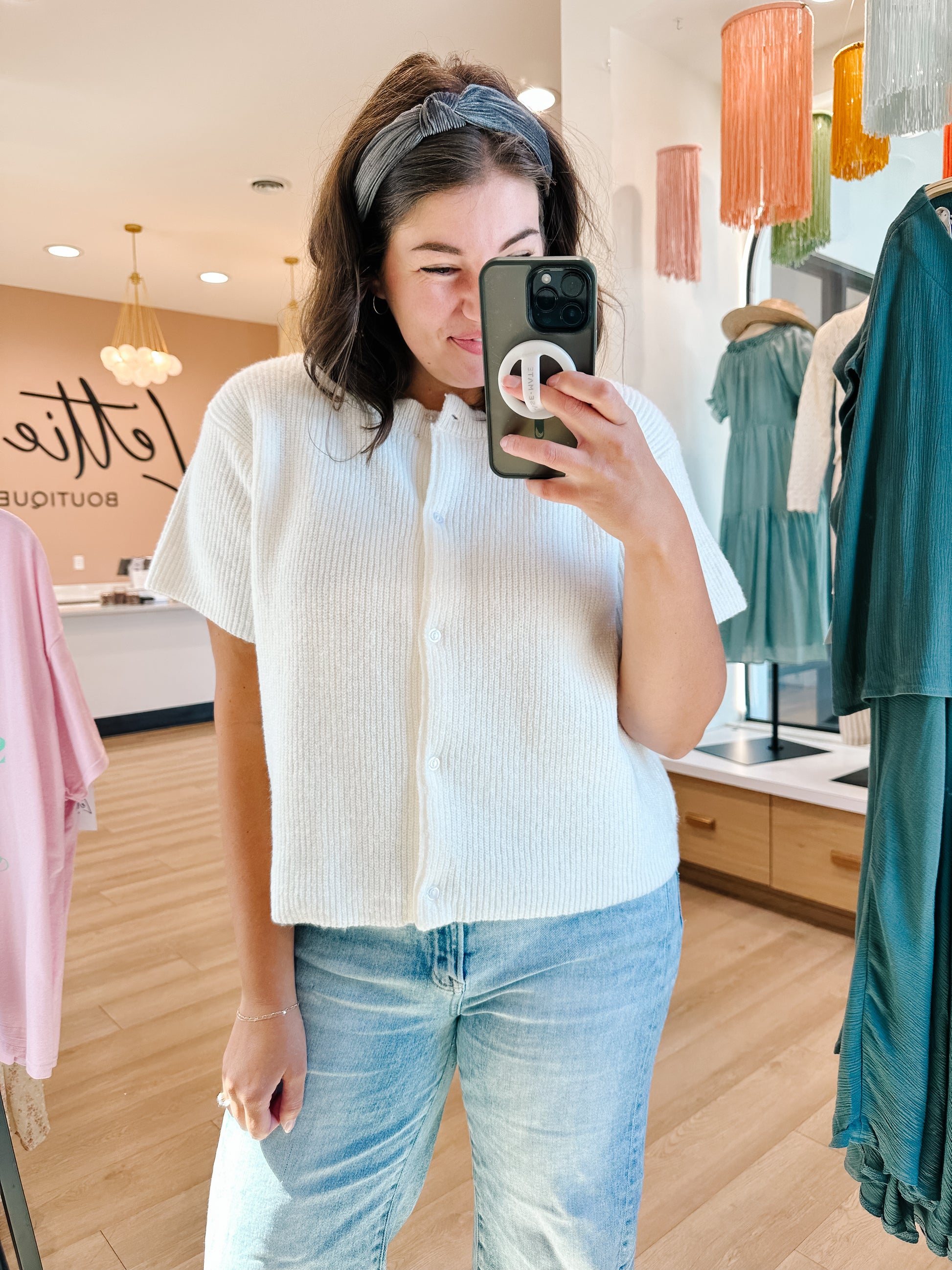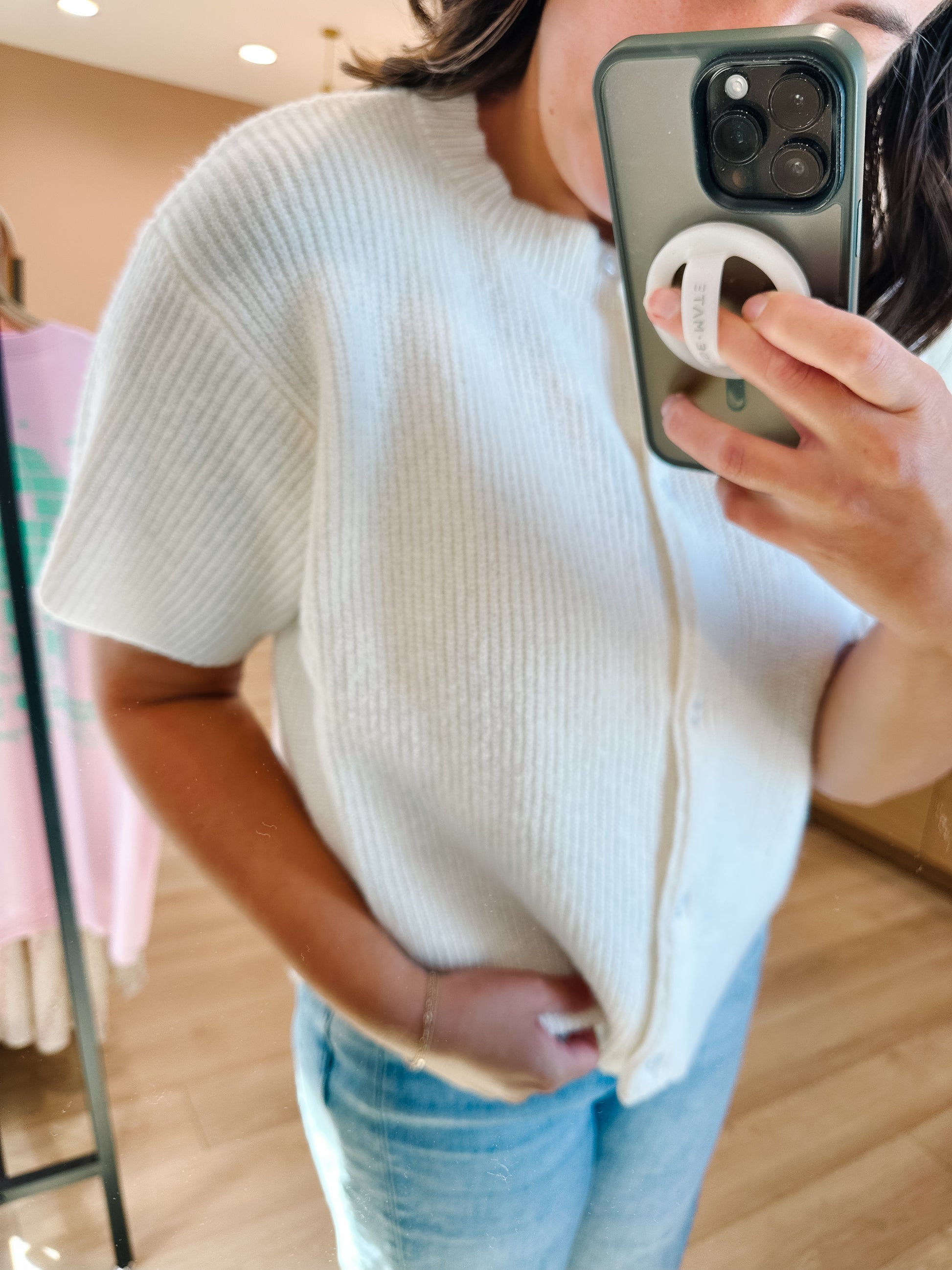 Alina Short Sleeve Cardigan In Cream