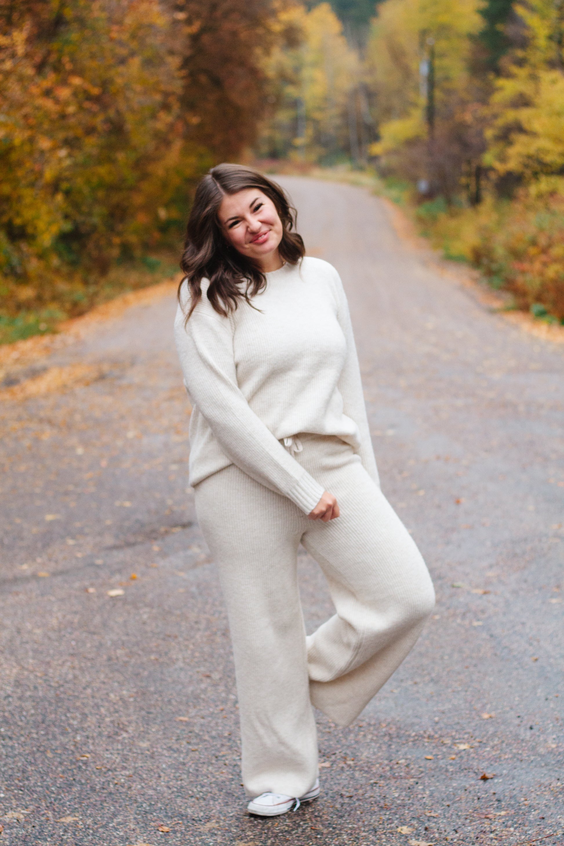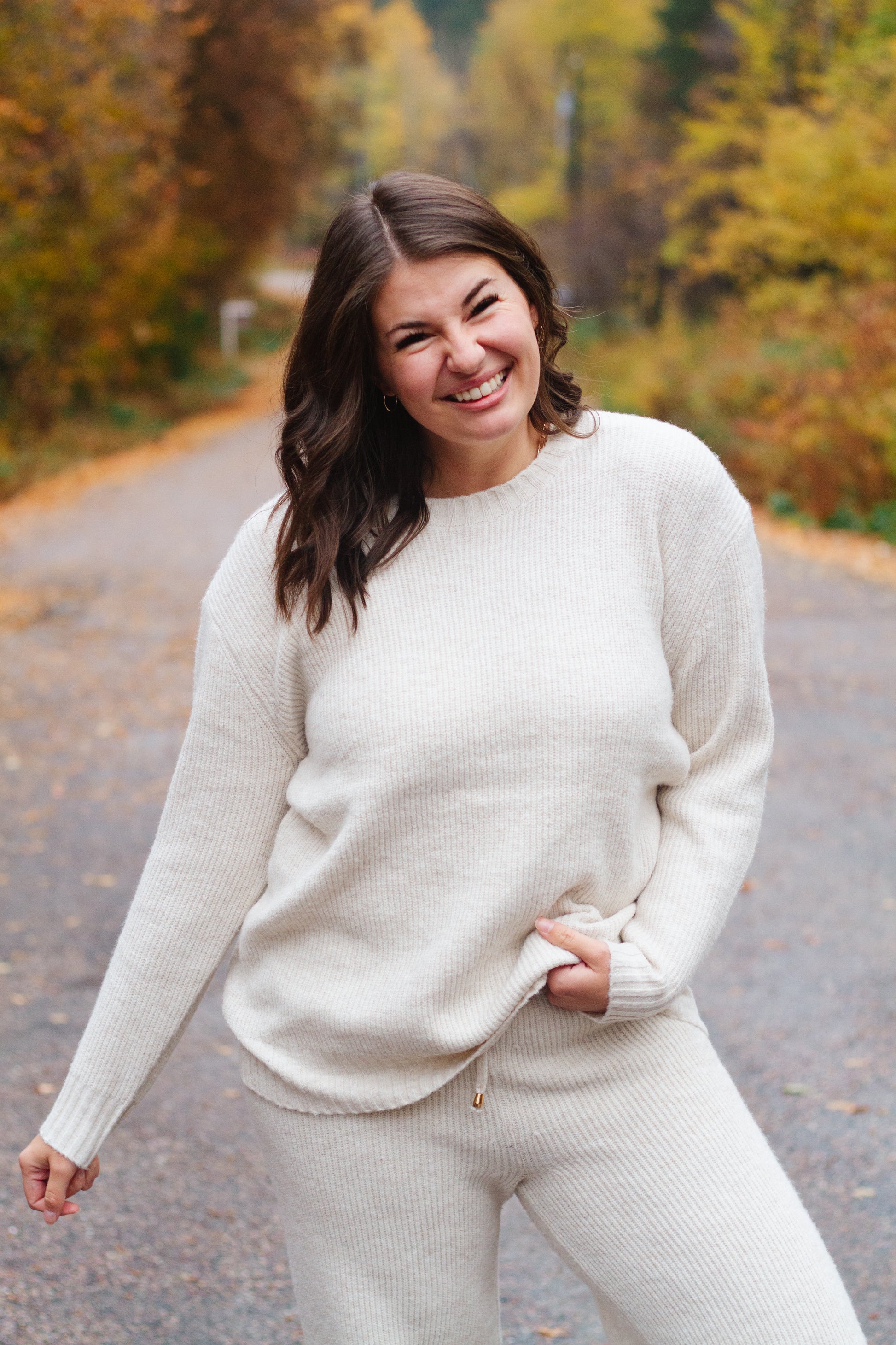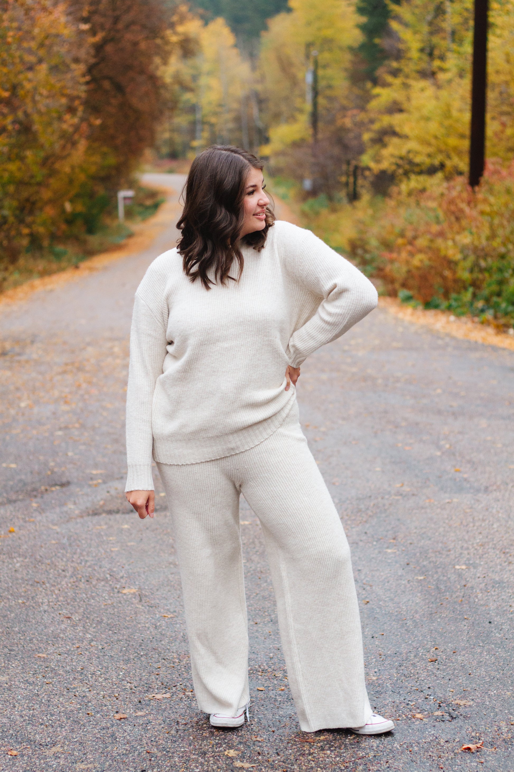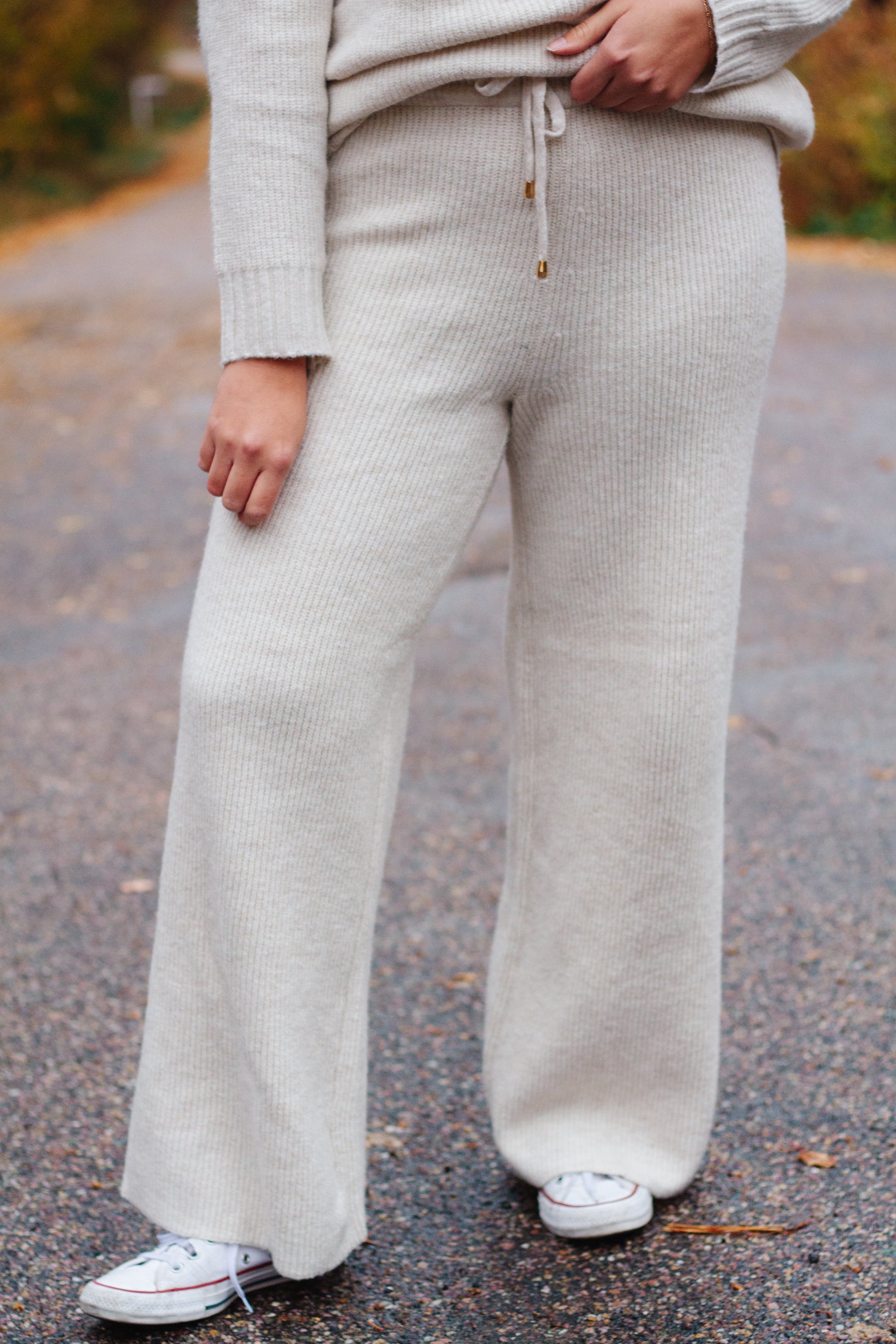 Soft, premium knit material with a wide leg pant and drawstring for a comfortable and relaxed fit