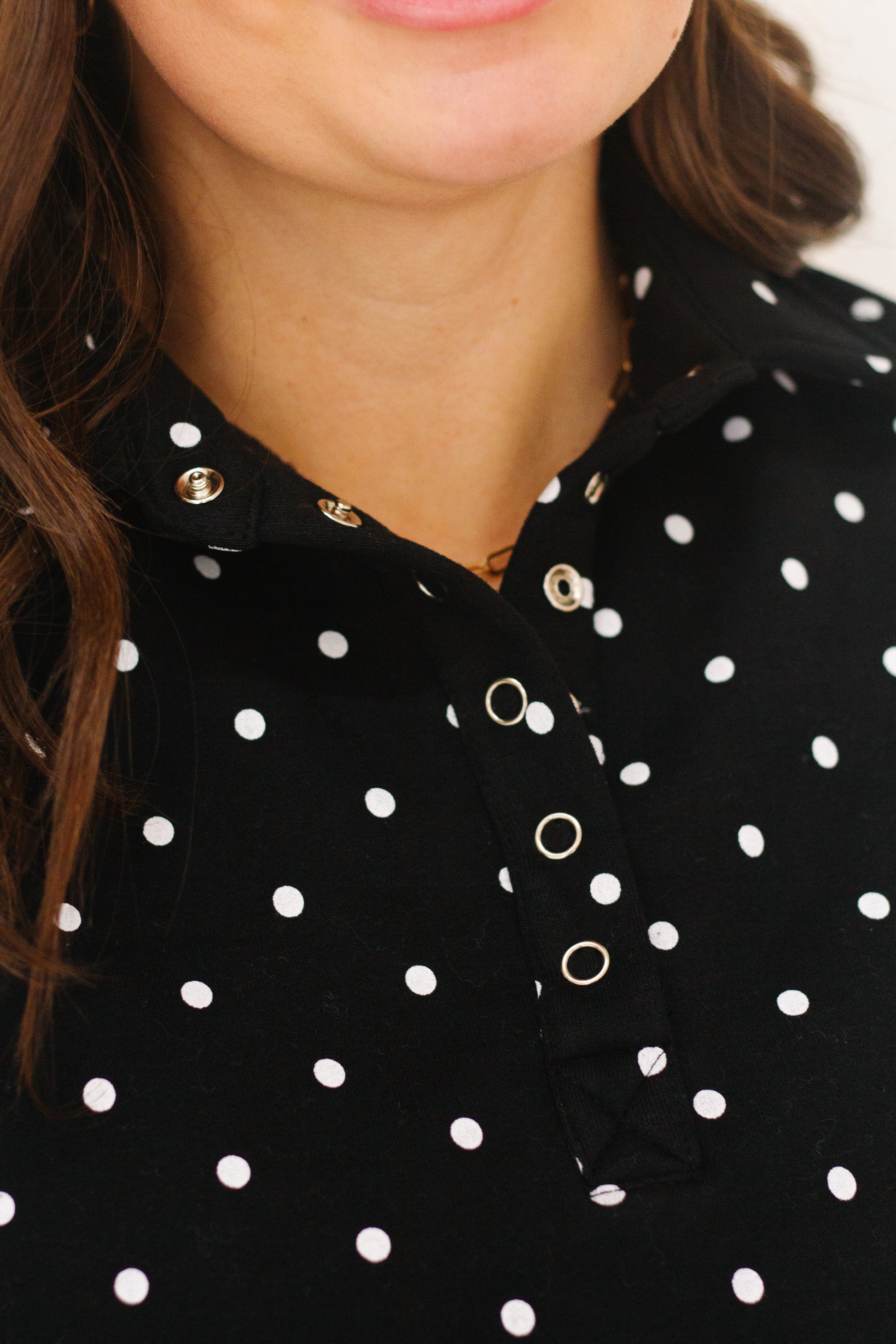 Snap buttons half way down the sweater with balloon sleeves and relaxed fit. Lightweight