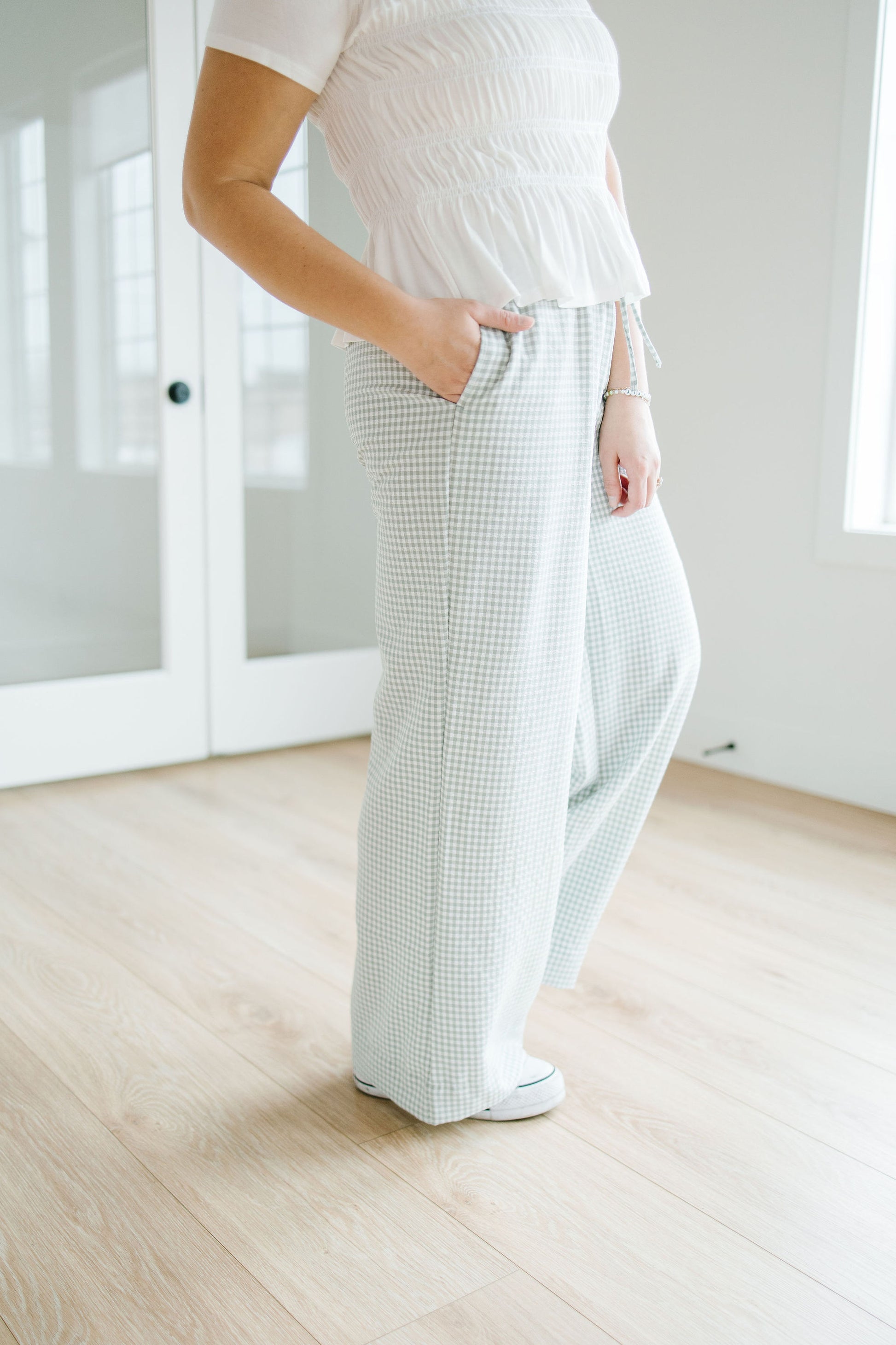 Have total comfort in these airy gingham wide-leg trousers. Designed with a flexible drawstring waist and hidden pockets, they offer a relaxed silhouette. The ultimate blend of timeless pattern and modern ease.
